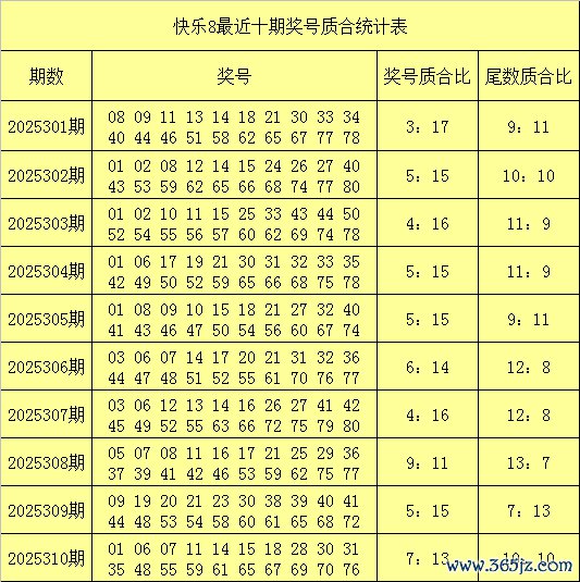 福彩欢畅8第2025310期开出奖号:01 06 07 11 14 15 18 28 30 31 35 48 55 59 61 65 67 69 70 76,其中奖号质合比为7:13,奖号余数质合比为10:10。